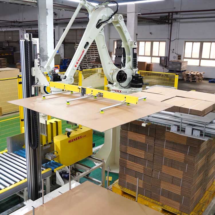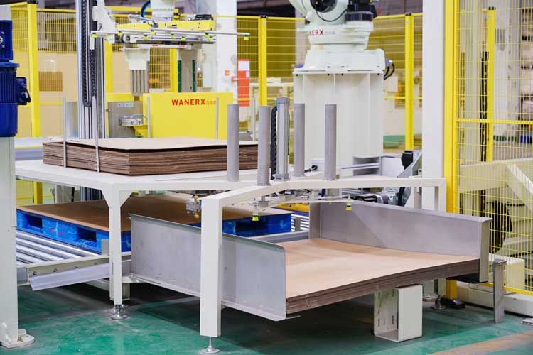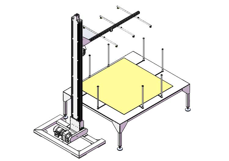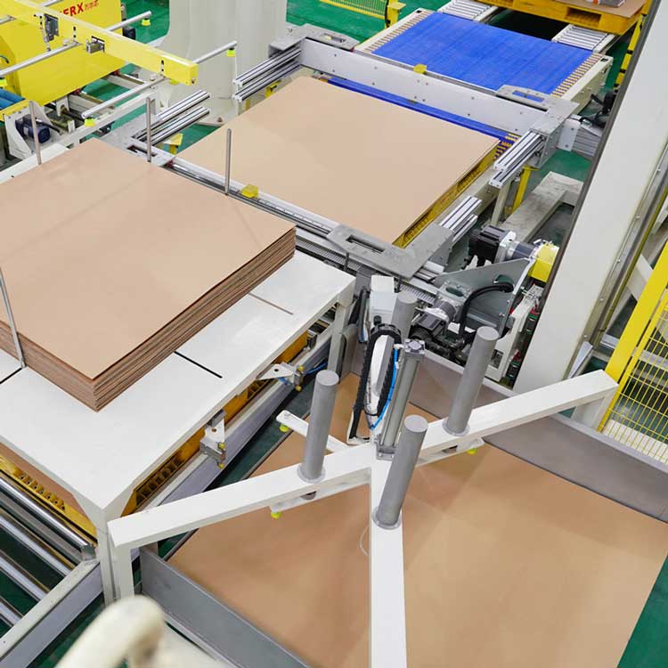 鋪隔板機的作用是通過吸盤和氣缸組合動作實現將整疊隔板和底紙逐一抓取并等待機械手臂將其取走。